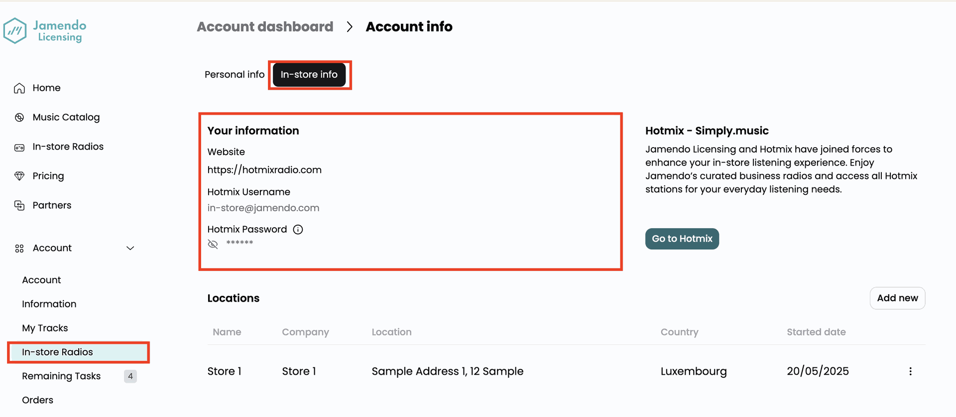 The Hotmix Radio mobile apps can be found on the following links: - Log into your Hotmix with the username and password which you can find in the In-Store radio tab of your Jamendo Licensing account.