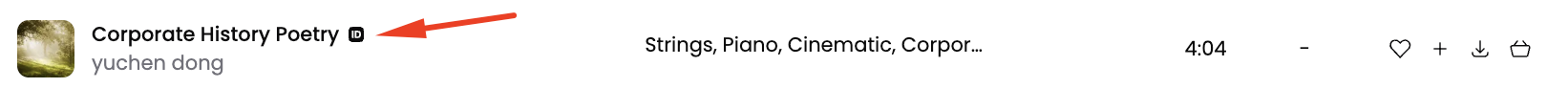 Tracks that do not display the ID icon next to their title on the Jamendo Licensing website are not registered with Content ID through Jamendo. This could mean that the artist is using a different third-party provider for Content ID, which means that licensing such tracks could still result in a Copyright Claim.